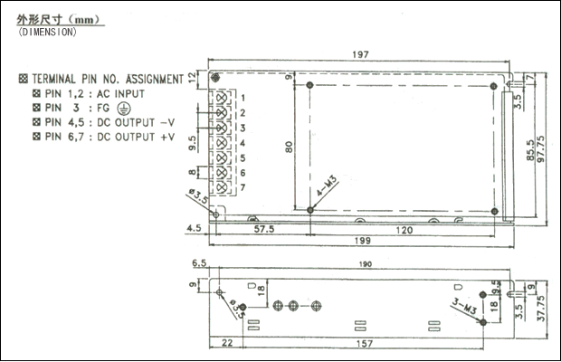 注:1、以上參數(shù)測試條件為:230VAC輸入,額定負載,25℃ 70% RH.濕度。